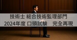 ここでは、実際に行われた昨年度の口頭試験の内容を再現し、試験当日の雰囲気を体感できるようにしました。選択科目は「建設部門 – 施工計画、施工設備及び積算」です。